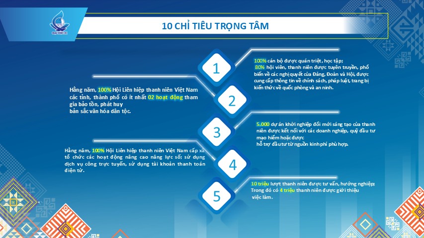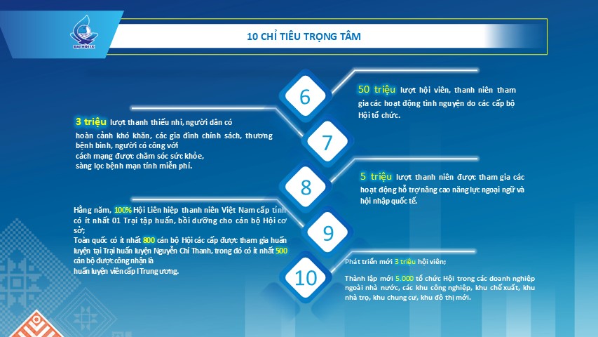 Những chỉ tiêu này không chỉ là mục tiêu, mà còn là động lực để thanh niên Việt Nam hành động quyết liệt, biến khát vọng thành hiện thực! Hãy cùng lan tỏa tinh thần Đại hội, chung tay đưa Nghị quyết vào cuộc sống./.