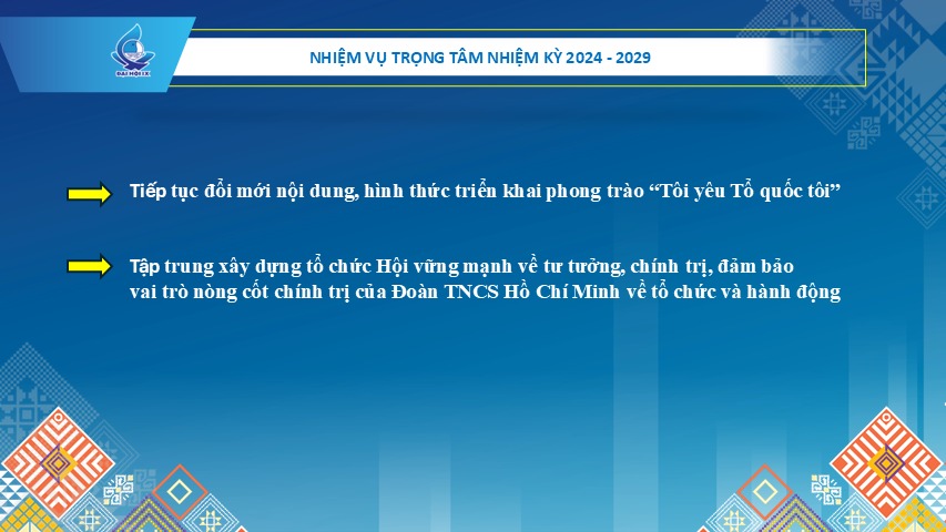 Giai đoạn 2024 - 2029 mở ra với nhiều cơ hội và thách thức, đòi hỏi thanh niên Việt Nam phải không ngừng rèn luyện, cống hiến và sáng tạo. Những nhiệm vụ trọng tâm đối với công tác hội và phong trào thanh niên nhiệm kỳ 2024 - 2029 chính là những định hướng rõ ràng, cụ thể để Thanh niên cả nước cùng phấn đấu thực hiện góp phần đưa công tác hội và phong trào thanh niên trong nhiệm kỳ 2024 - 2029 đạt được nhiều thành tựu to lớn hơn.