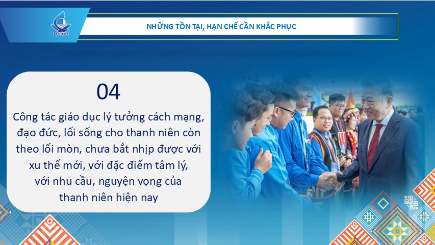 Tại Đại hội đại biểu toàn quốc Hội Liên hiệp Thanh niên Việt Nam lần thứ IX, Tổng Bí thư Tô Lâm đã có bài phát biểu quan trọng, thể hiện sự quan tâm sâu sắc của Đảng, Nhà nước đối với thế hệ trẻ. Tổng Bí thư đã ghi nhận những đóng góp của thanh niên Việt Nam, đồng thời chỉ ra 05 nhóm vấn đề cần khắc phục để thanh niên thực sự trở thành lực lượng xung kích trong sự nghiệp xây dựng và bảo vệ Tổ quốc.