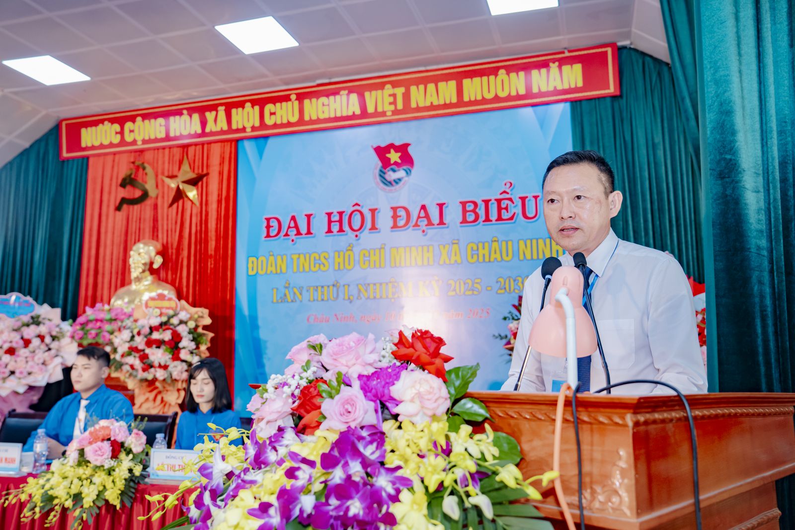 Phát biểu chỉ đạo Đại hội, đồng chí Đỗ Quang Huy - Phó Bí thư Thường trực Đảng ủy xã ghi nhận và biểu dương những kết quả mà Đoàn xã đã đạt được trong thời gian qua; đồng thời nhấn mạnh vai trò xung kích, sáng tạo của lực lượng đoàn viên, thanh niên trong tham gia phát triển kinh tế - xã hội, giữ gìn an ninh trật tự và xây dựng nông thôn mới tại địa phương. Đồng chí mong muốn Ban Chấp hành Đoàn xã nhiệm kỳ mới tiếp tục phát huy tinh thần đoàn kết, đổi mới phương thức hoạt động, xây dựng đội ngũ cán bộ Đoàn có bản lĩnh, trí tuệ, dám nghĩ, dám làm, dám chịu trách nhiệm; góp phần cùng cấp ủy, chính quyền xây dựng xã Châu Ninh ngày càng phát triển.
