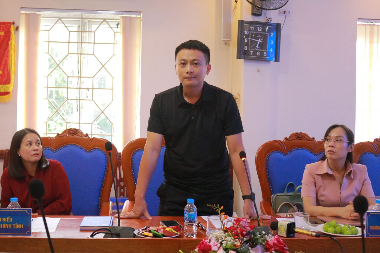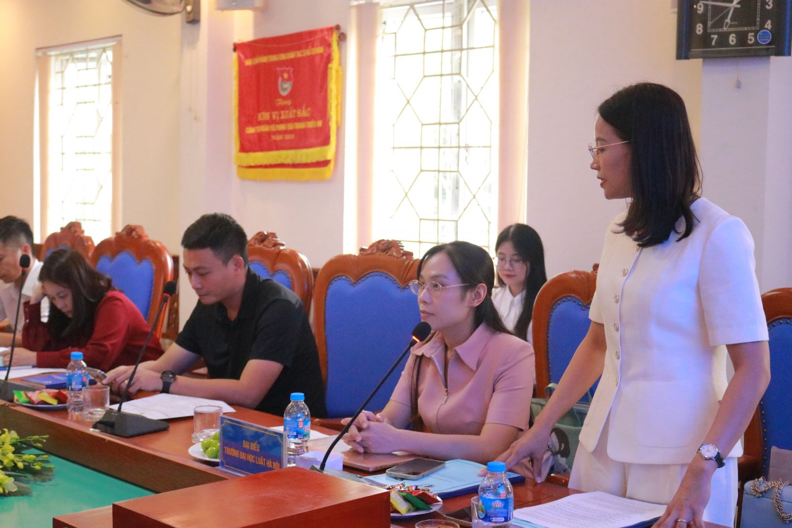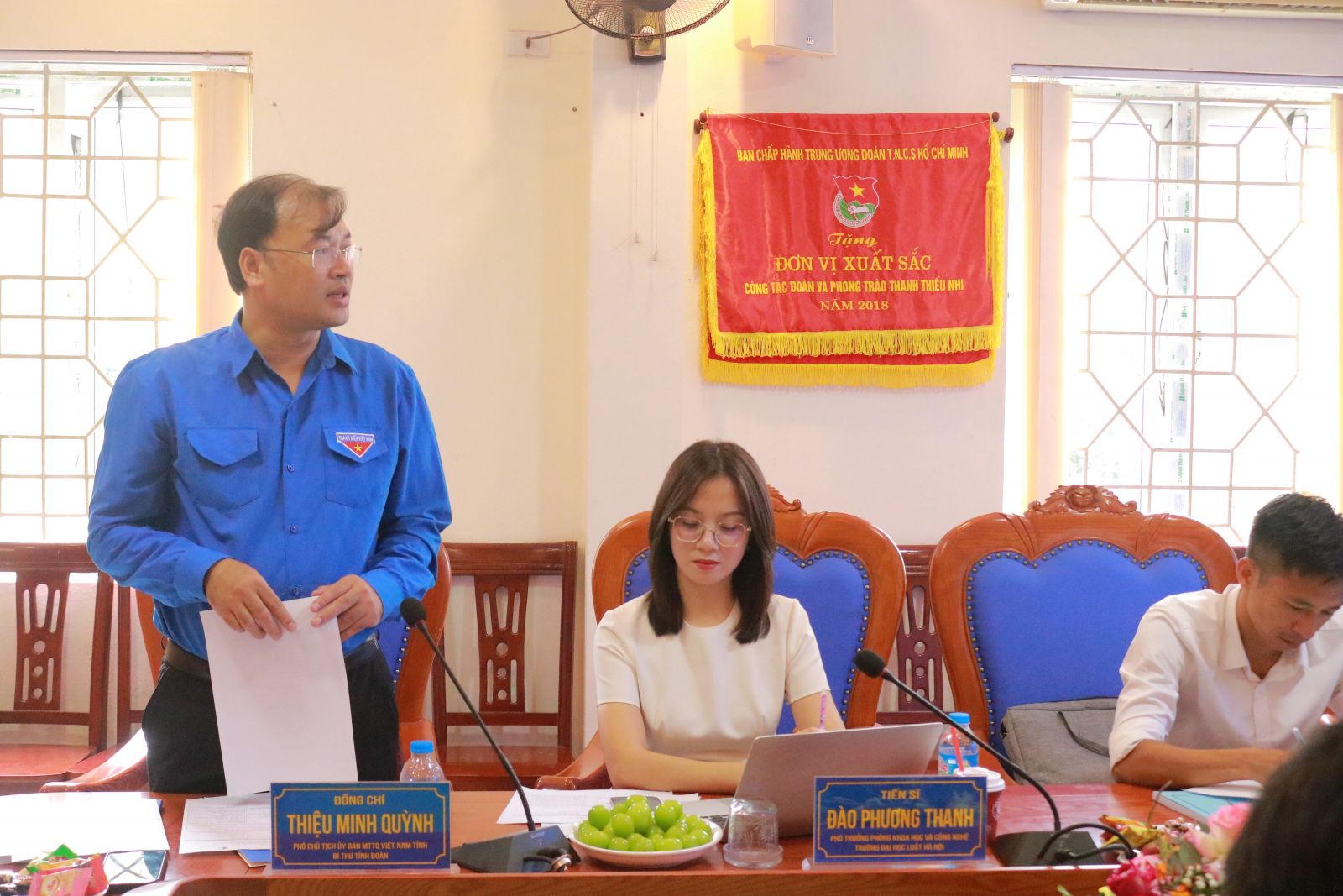 Đồng chí Thiệu Minh Quỳnh - Phó Chủ tịch Ủy ban MTTQ Việt Nam tỉnh, Bí thư Tỉnh đoàn Hưng Yên phát biểu tại Hội thảo