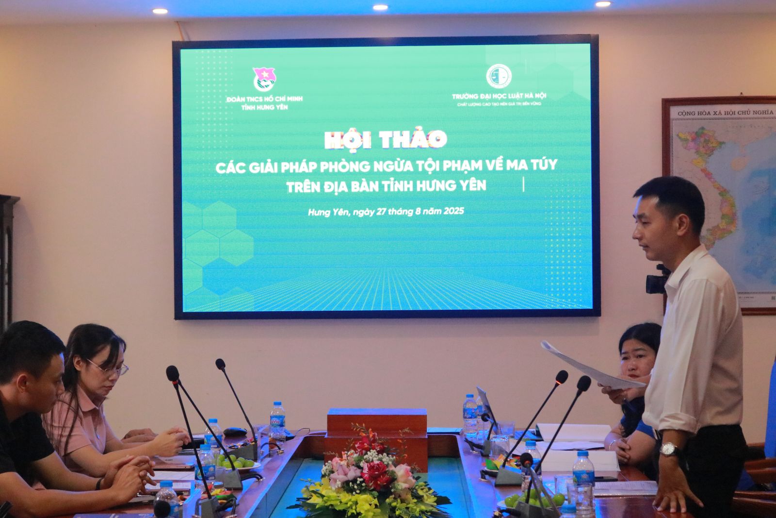 Chiều 27/8, Đoàn TNCS Hồ Chí Minh tỉnh Hưng Yên phối hợp với Trường Đại học Luật Hà Nội tổ chức hội thảo “Các giải pháp phòng ngừa tội phạm về ma túy trên địa bàn tỉnh”.
