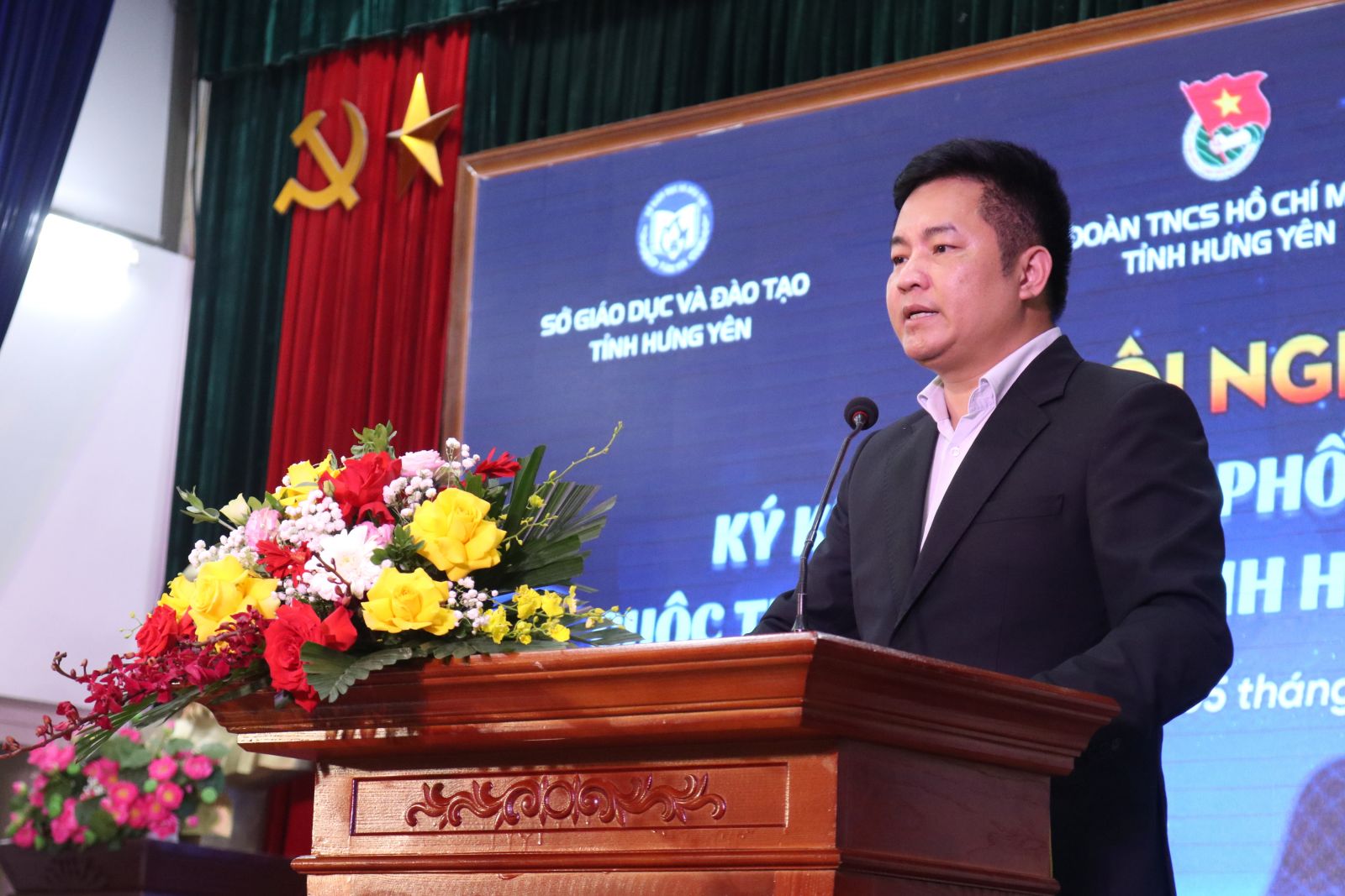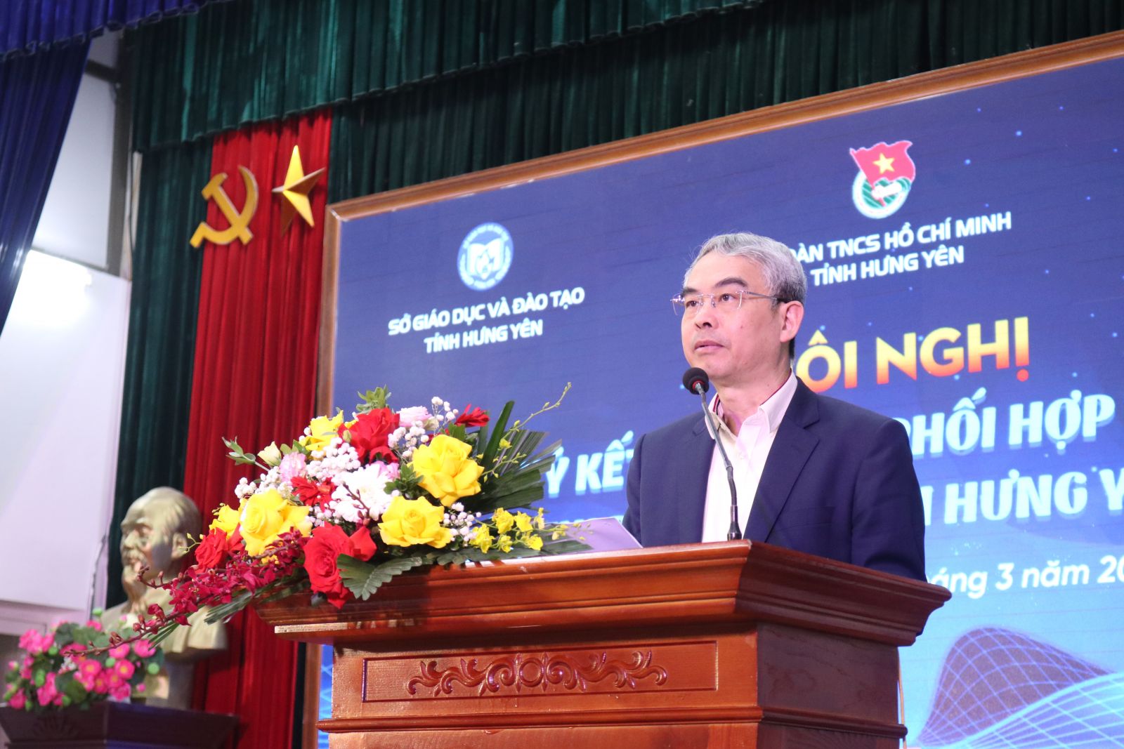 Dự Hội nghị có đồng chí Phạm Đồng Thụy - Ủy viên Ban Thường vụ Tỉnh ủy, Giám đốc Sở Giáo dục và Đào tạo tỉnh Hưng Yên; PGS.TS. Trần Quang Diệu - Giám đốc Trung tâm Công nghệ và Chuyển đổi số, Học viện Chính trị quốc gia Hồ Chí Minh; đồng chí Thiệu Minh Quỳnh - Ủy viên BCH Trung ương Đoàn, Phó Chủ tịch Ủy ban MTTQ Việt Nam tỉnh, Bí thư Tỉnh đoàn; đồng chí Vương Như Hoan - Phó Bí thư Tỉnh đoàn, Chủ tịch Hội LHTN Việt Nam tỉnh; PGS.TS Bùi Trung Thành - Hiệu trưởng Trường Đại học Sư phạm Kỹ thuật Hưng Yên.