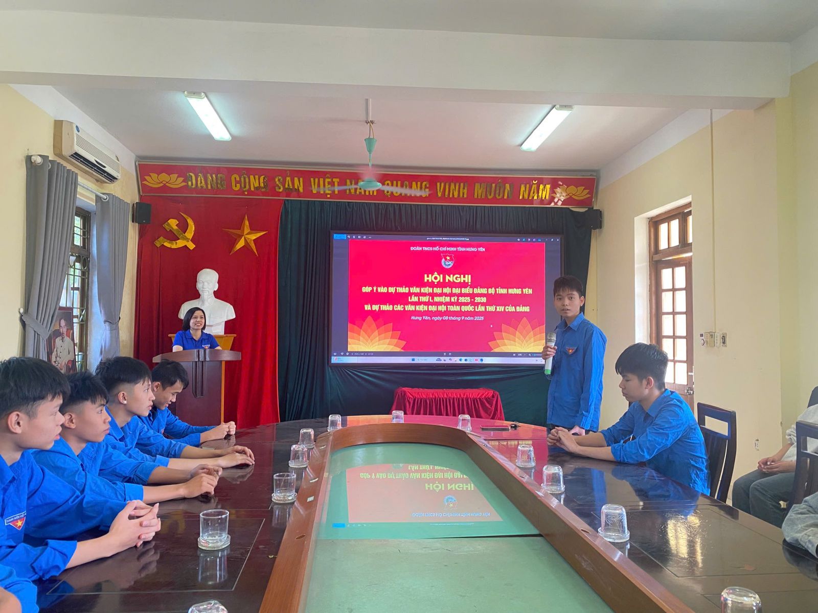 Ngày 08/9/2025, Ban Chấp hành Tỉnh đoàn tổ chức hội nghị trực tiếp kết hợp trực tuyến đến các điểm cầu xã, phường, Đoàn trực thuộc trên địa bàn tỉnh để lấy ý kiến đóng góp văn kiện Đại hội Đảng bộ tỉnh Hưng Yên lần thứ I, nhiệm kỳ 2025- 2030 và dự thảo các văn kiện Đại hội toàn quốc lần thứ XIV của Đảng
