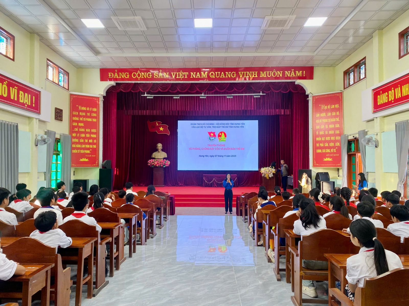 Sáng ngày 07/11/2025, Câu lạc bộ tư vấn, trợ giúp trẻ em tỉnh Hưng Yên tổ chức Truyền thông về phòng, chống bắt cóc và buôn bán trẻ em tại xã Hưng Hà, tỉnh Hưng Yên.