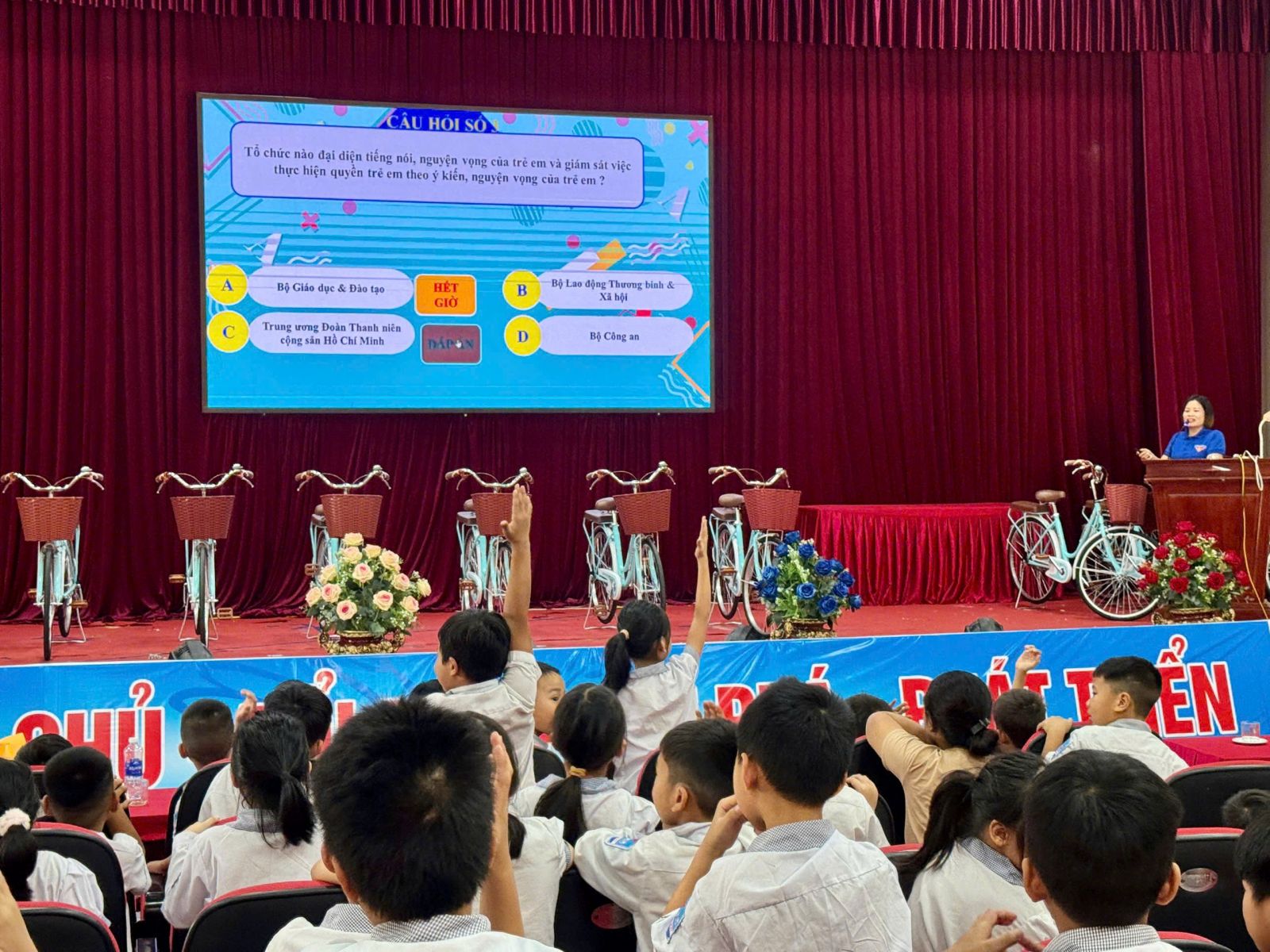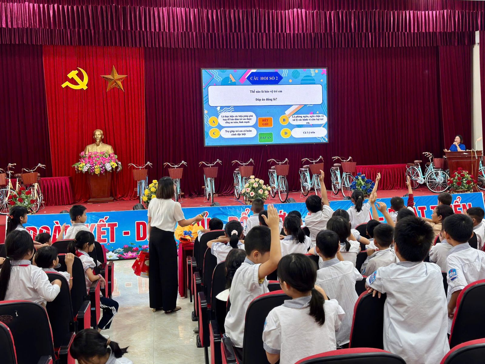Các em học sinh rất hào hứng trong phần “Hỏi đáp về quyền trẻ em”, sôi nổi thảo luận về các nhóm quyền cơ bản của trẻ em hay những hành vi vi phạm quyền trẻ em, bày tỏ ý kiến, tâm tư, nguyện vọng, thắc mắc xoay quanh các quy định của Luật Trẻ em.
