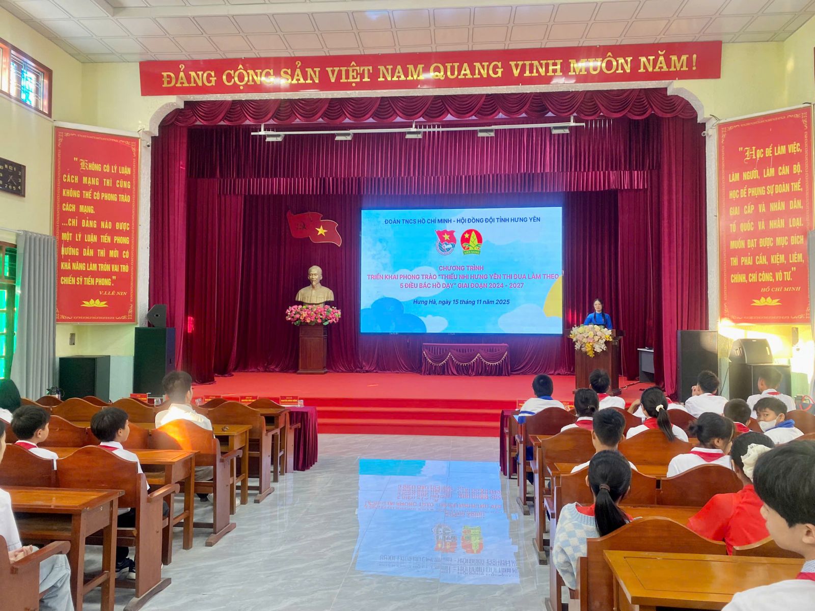Sáng ngày 15/11/2025, Ban Thường vụ Tỉnh đoàn - Hội đồng Đội tỉnh tổ chức Chương trình triển khai phong trào "Thiếu nhi Hưng Yên thi đua làm theo 5 điều Bác Hồ dạy" giai đoạn 2024 - 2027 tại xã Hưng Hà, tỉnh Hưng Yên.