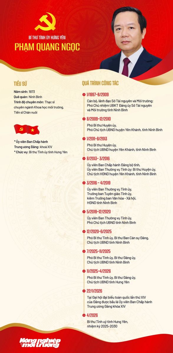 Ngày 9/4, ông Phạm Quang Ngọc, Chủ tịch UBND tỉnh Hưng Yên, được Ban Chấp hành Đảng bộ tỉnh bầu giữ chức Bí thư Tỉnh ủy nhiệm kỳ 2025-2030.