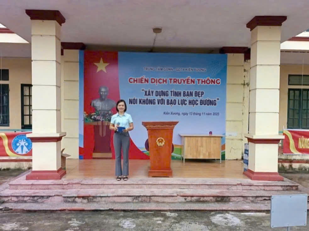 Ngày 13/11/2025, Đoàn TT GDNN - GDTX Kiến Xương đã tổ chức Chiến dịch truyền thông “Xây dựng tình bạn đẹp – Nói không với bạo lực học đường”, thu hút hơn 1.000 học sinh tham gia. Chiến dịch hướng tới mục tiêu xây dựng môi trường học đường an toàn, thân thiện và nâng cao nhận thức của học sinh về việc ứng xử văn minh trong trường học.