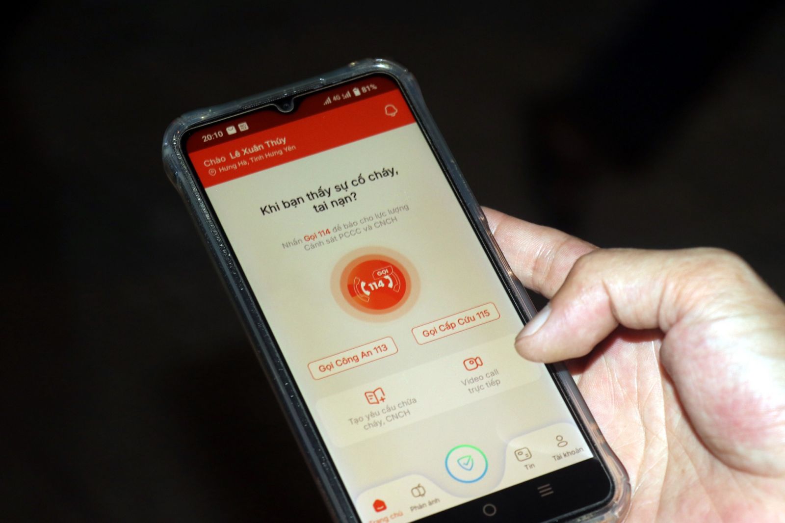 Giao diện ứng dụng 'Báo cháy 114' tiện lợi, dễ dàng sử dụng trên điện thoại thông minh