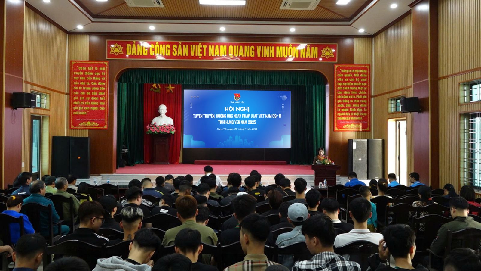 Sáng ngày 09/11/2025, Tỉnh đoàn Hưng Yên tổ chức Hội nghị tuyên truyền, hưởng ứng ngày Pháp luật Việt Nam 09/11 năm 2025, thu hút hơn 300 đoàn viên, thanh niên và người dân tham dự. Đây là hoạt động thiết thực nhằm khẳng định vai trò của pháp luật trong đời sống xã hội, góp phần xây dựng ý thức công dân thượng tôn pháp luật, sống và làm việc có trách nhiệm với cộng đồng.