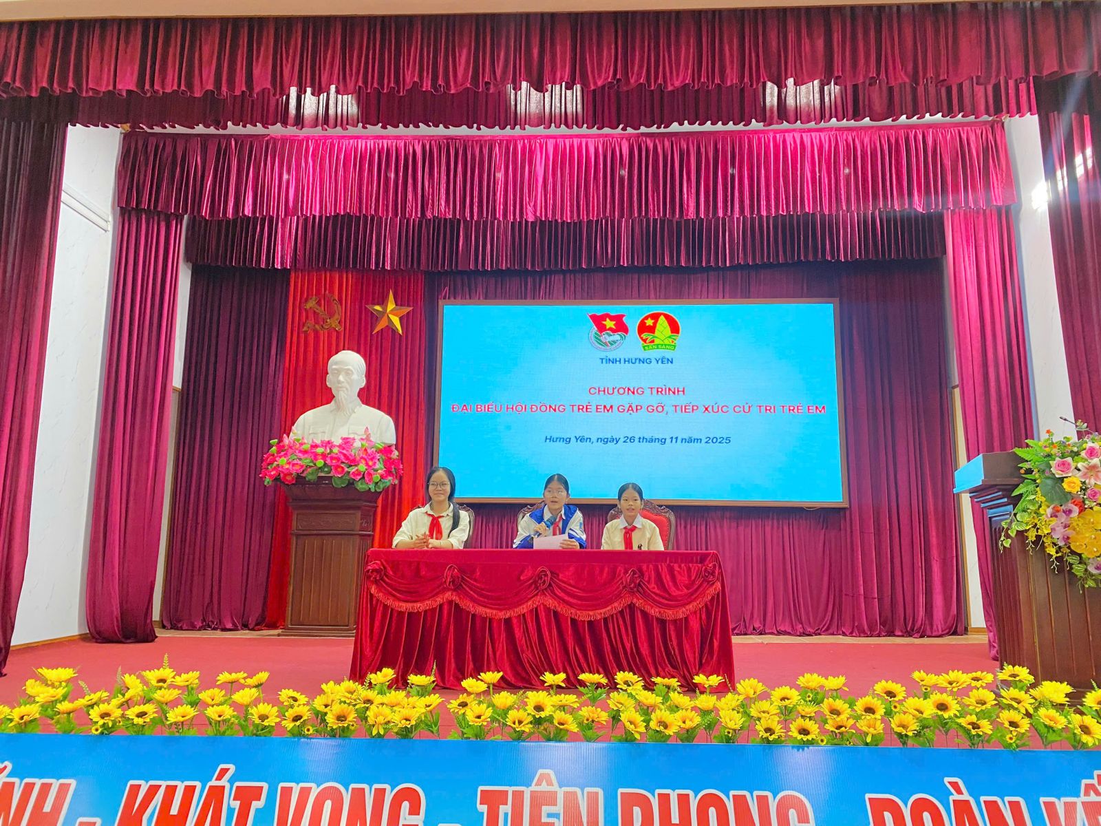 Đại diện Hội đồng Trẻ em tỉnh Hưng Yên đã lắng nghe, trao đổi trực tiếp và ghi nhận toàn bộ ý kiến, đồng thời truyền tải thông điệp tích cực về quyền tham gia của trẻ em, khuyến khích trẻ em mạnh dạn nói lên suy nghĩ của mình.