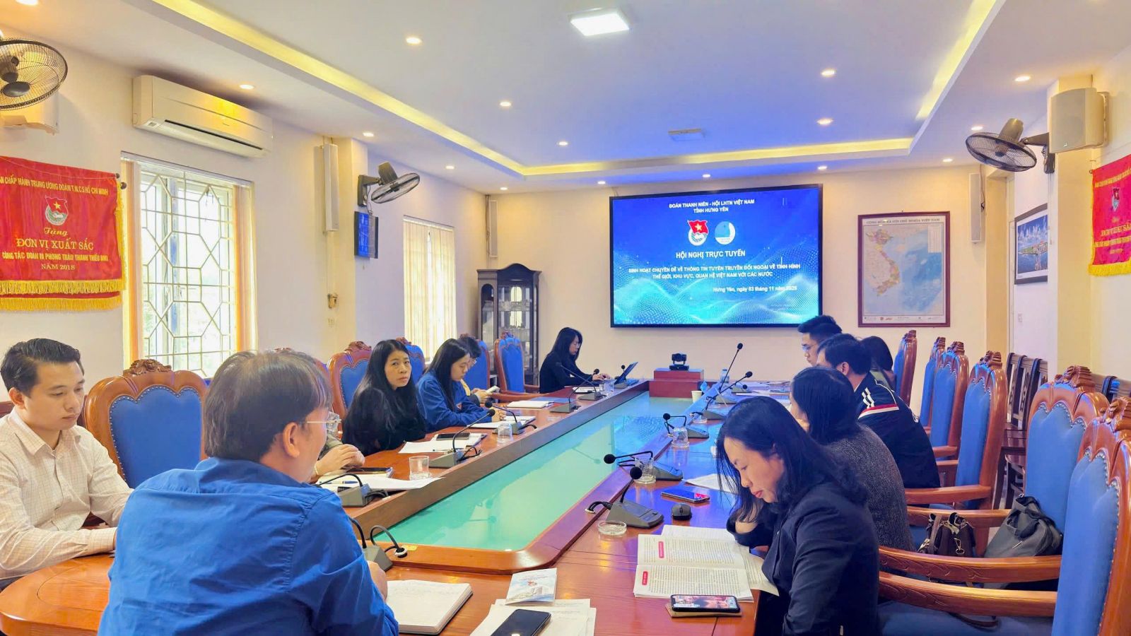 Sáng ngày 03/11/2025, tại tầng 2, Trụ sở Cơ quan Tỉnh đoàn, Ban Thường vụ Tỉnh đoàn - Ban Thư ký Hội LHTN Việt Nam tỉnh Hưng Yên tổ chức Hội nghị trực tuyến kết hợp trực tiếp sinh hoạt chuyên đề thông tin tuyên truyền đối ngoại về tình hình thế giới, khu vực; quan hệ Việt Nam với các nước.