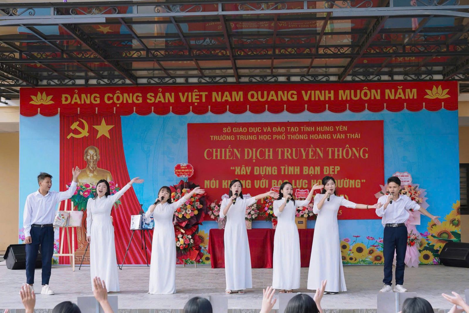 Ngày 21/11/2025, Đoàn trường THPT Hoàng Văn Thái đã tổ chức Chiến dịch truyền thông “Xây dựng tình bạn đẹp – Nói không với bạo lực học đường”, thu hút hơn 2000 học sinh tham gia. Chiến dịch hướng tới mục tiêu xây dựng môi trường học đường an toàn, thân thiện và nâng cao nhận thức của học sinh về việc ứng xử văn minh trong trường học.