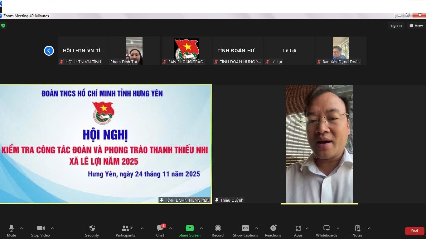 Chiều ngày 24/11/2025, BTV Tỉnh đoàn tổ chức kiểm tra công tác Đoàn của Đoàn xã Lê Lợi bằng hình thức trực tuyến