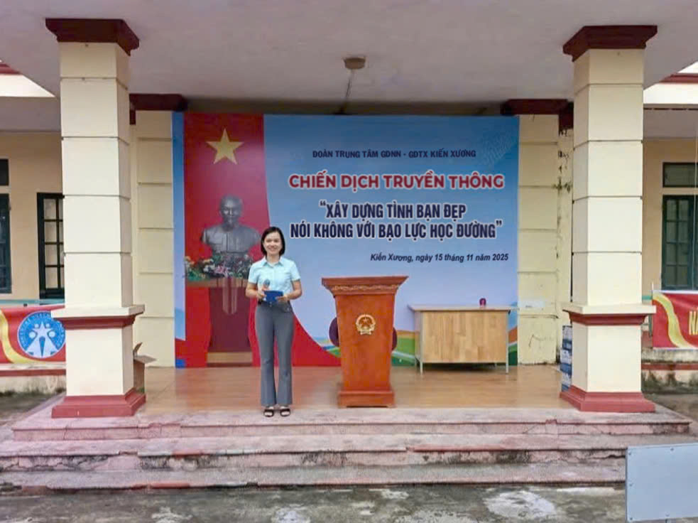 Ngày 15/11/2025, Đoàn TT GDNN - GDTX Kiến Xương đã tổ chức Chiến dịch truyền thông “Xây dựng tình bạn đẹp – Nói không với bạo lực học đường”, thu hút hơn 1.000 học sinh tham gia. Chiến dịch hướng tới mục tiêu xây dựng môi trường học đường an toàn, thân thiện và nâng cao nhận thức của học sinh về việc ứng xử văn minh trong trường học.