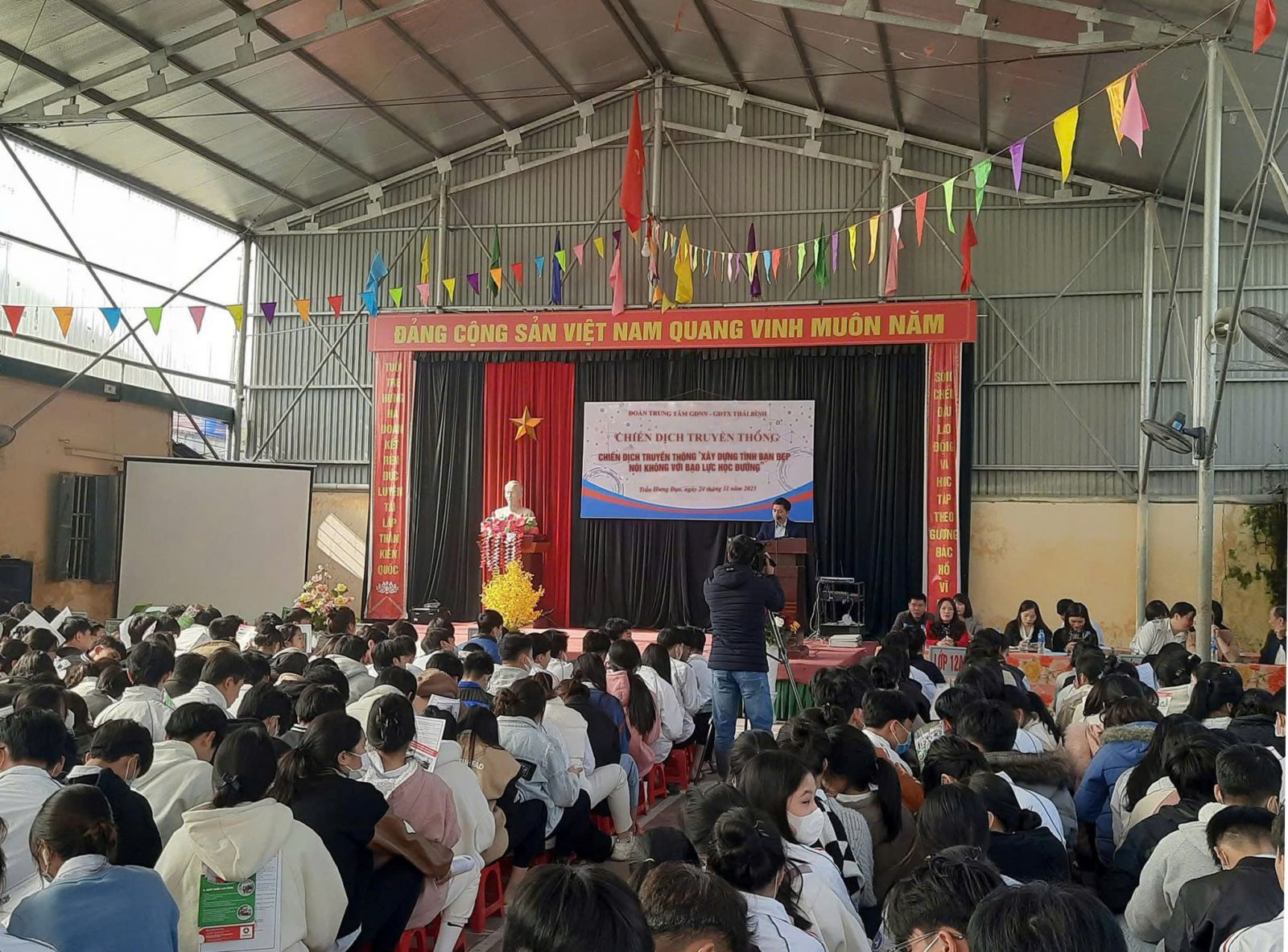 Ngày 24/11/2025, Đoàn Trung tâm GDNN –GDTX Thái Bình đã tổ chức Chiến dịch truyền thông “Xây dựng tình bạn đẹp – Nói không với bạo lực học đường”, thu hút hơn 1.300 đoàn viên tham gia. Chiến dịch hướng tới mục tiêu xây dựng môi trường học đường an toàn, thân thiện và nâng cao nhận thức của học sinh về việc ứng xử văn minh trong trường học.