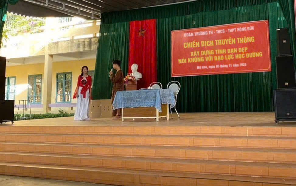 Nhằm giáo dục ý thức đạo đức, lối sống văn hóa; tuyên truyền, định hướng tư tưởng đúng đắn cho đoàn viên, thanh niên; chiều ngày 05/11/2025, Đoàn trường TH, THCS&THPT Hồng Đức tổ chức Chiến dịch truyền thông “Xây dựng tình bạn đẹp – Nói không với bạo lực học đường”.