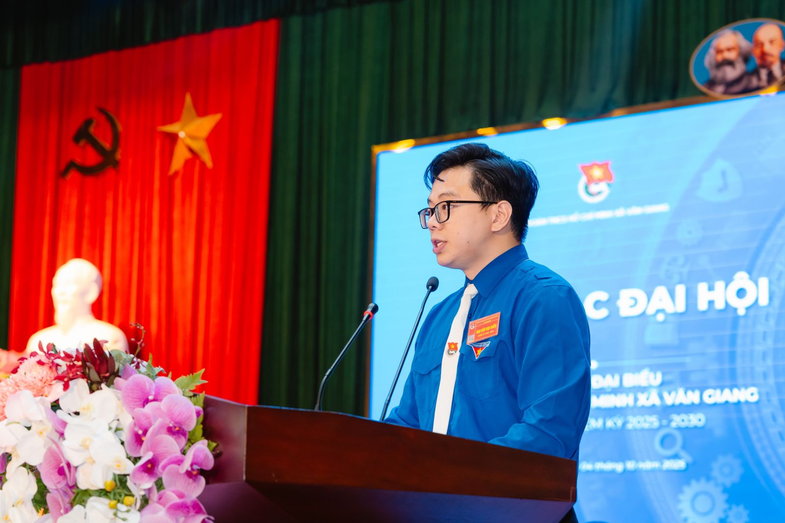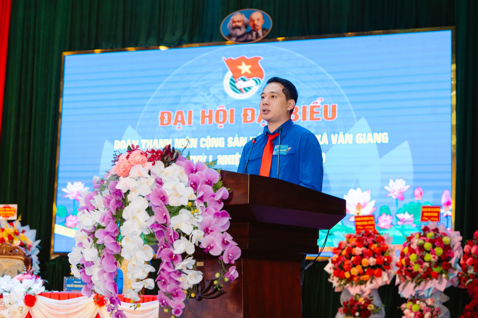 Phát biểu tại Đại hội, đồng chí Vương Như Hoan - Phó Bí thư Tỉnh đoàn, Trưởng ban Công tác Thanh thiếu nhi, Ủy ban MTTQ Việt Nam tỉnh đã chúc mừng và ghi nhận những nỗ lực, đóng góp của tuổi trẻ xã Văn Giang trong thời gian qua. Đồng chí đánh giá cao sự chủ động, linh hoạt của Ban Chấp hành Đoàn xã lâm thời trong việc nhanh chóng ổn định tổ chức, triển khai các phong trào hành động cách mạng, tạo sức lan tỏa trong đoàn viên, thanh thiếu nhi.